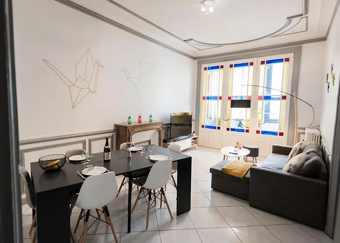 Boendet är beläget 550 meter från Church of Notre Dame la Grande och 10 minuters gångavstånd från Église Saint-Porchaire. Centrala Poitiers kan nås på 15 minuters gångavstånd. Det finns Agora och Gare Aux Papilles inom ca 150 meter från stället. Lägenheten erbjuder närhet till Infantry Regiment.